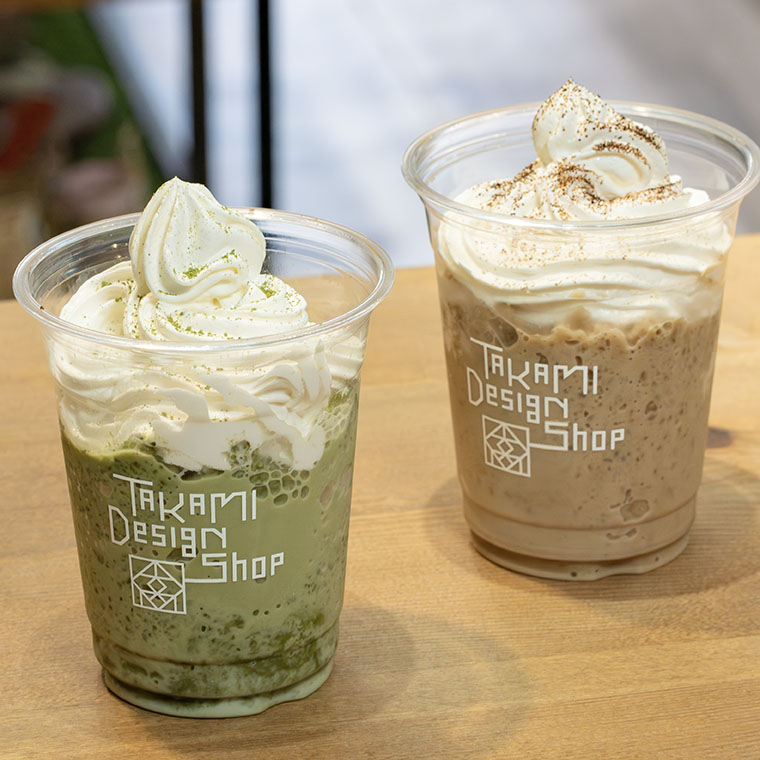 ふわもこホイップ、マウンテンホイップフラペリッチ各550円。コク深コーヒーに甘い頂き、コーヒー味。茶の深みホイップの頂き、抹茶味。